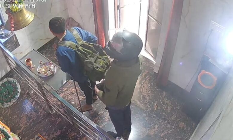 वायरल वीडियो के मुताबिक, मंदिर में शनिवार को दो चोर घुस थे। दोनों ने जुते—चप्पल पहले बाहर उतारे और भगवान के सामने हाथ जोड़े। उसके बाद मंदिर में लगे घंटे, ज्योति सामान समेट लिया।