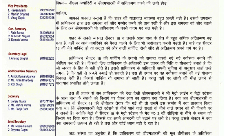 नौएडा में अतिक्रमण की बढ़ती समस्या! CONRWA ने अथॉरिटी और DMRC पर उठाए सवाल