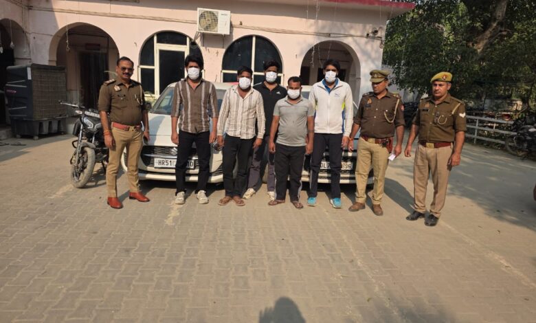 पकड़े गए आरोपियों की पहचान पुलिस ने दनकौर के खेरली हाफिजपुर निवासी पंकज वाल्मिकी, गौर सिटी निवासी संजय पुत्र सुरेश सोलंकी, दिल्ली के दल्लुपुरा निवासी नितिश भाटी उर्फ जादू और दादरी के चक्रसैनपुर गांव निवासी अभिषेक भाटी एवं रितिक भाटी के रुप में की है।