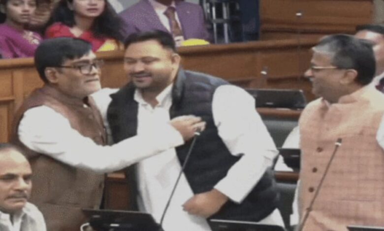 बिहार में 2025 चुनाव के बाद पहला शीतकालीन सत्र सोमवार से शुरू हो गया है। इस दौरान चुनाव में जीतकर आए सभी 243 विधायकों को श्पथ दिलाई गई। इसी बीच विधनसभा में एक बेहतरीन नजारा देखने को मिला। तेजस्वी यादव अपने सीट से उठकर भाजपा के शामिल नीतीश कैबिनेट के कृषि मंत्री रामकृपाल यादव से गले मिले।