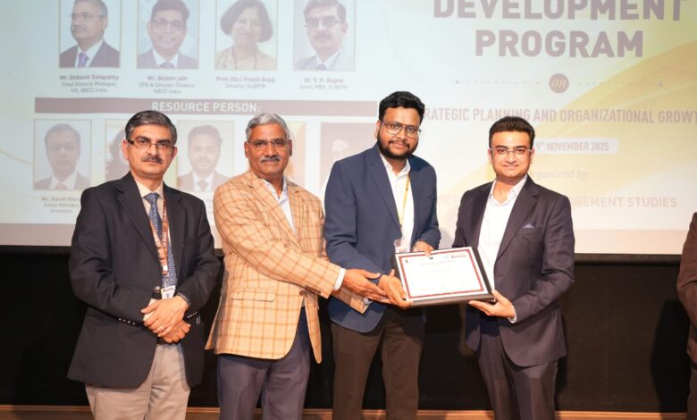 ग्रेटर नोएडा : जी.एल. बजाज इंस्टिट्यूट ऑफ टेक्नोलॉजी एंड मैनेजमेंट (GLBITM) के प्रबंधन अध्ययन विभाग द्वारा 17–19 नवम्बर 2025 के बीच एनबीसीसी (इंडिया) लिमिटेड, एक नवरत्न पीएसयू, के वरिष्ठ एवं मिड-लेवल अधिकारियों के लिए “स्ट्रैटेजिक प्लानिंग एंड ऑर्गनाइज़ेशनल ग्रोथ” विषय पर तीन दिवसीय मैनेजमेंट डेवलपमेंट प्रोग्राम (MDP) का सफल आयोजन किया गया।