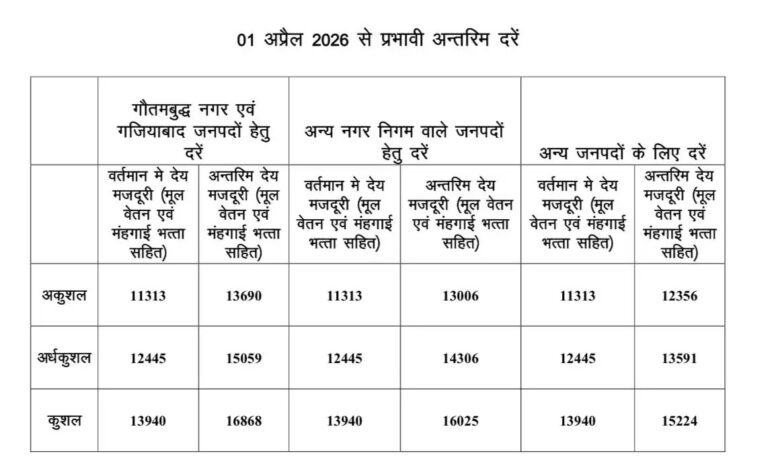 नोएडा एवं गाजियाबाद क्षेत्र में अकुशल श्रमिकों को पूर्व में ₹11,313 प्रतिमाह प्राप्त होते थे, जिसे 1 अप्रैल से बढ़ाकर ₹13,690 प्रतिमाह कर दिया गया है। इसी क्रम में अर्द्धकुशल एवं कुशल श्रमिकों की मजदूरी दरों में भी समुचित वृद्धि की गई है, जिससे लाखों श्रमिक परिवारों को प्रत्यक्ष लाभ प्राप्त होगा।